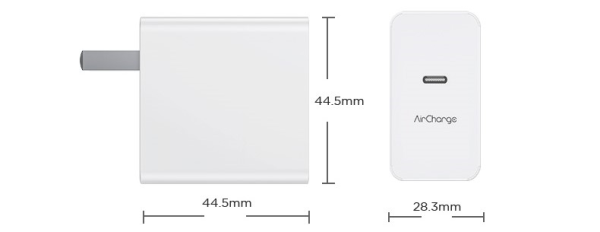 整个充电器的尺寸规格为44.5mm*44.5mm*28.3mm,体积可以非常小,介于笔记本充电器和手机充电器之间,非常便于用户居家或者外出携带使用,而且拥有这么一个充电器就可以为很多的设备充电。