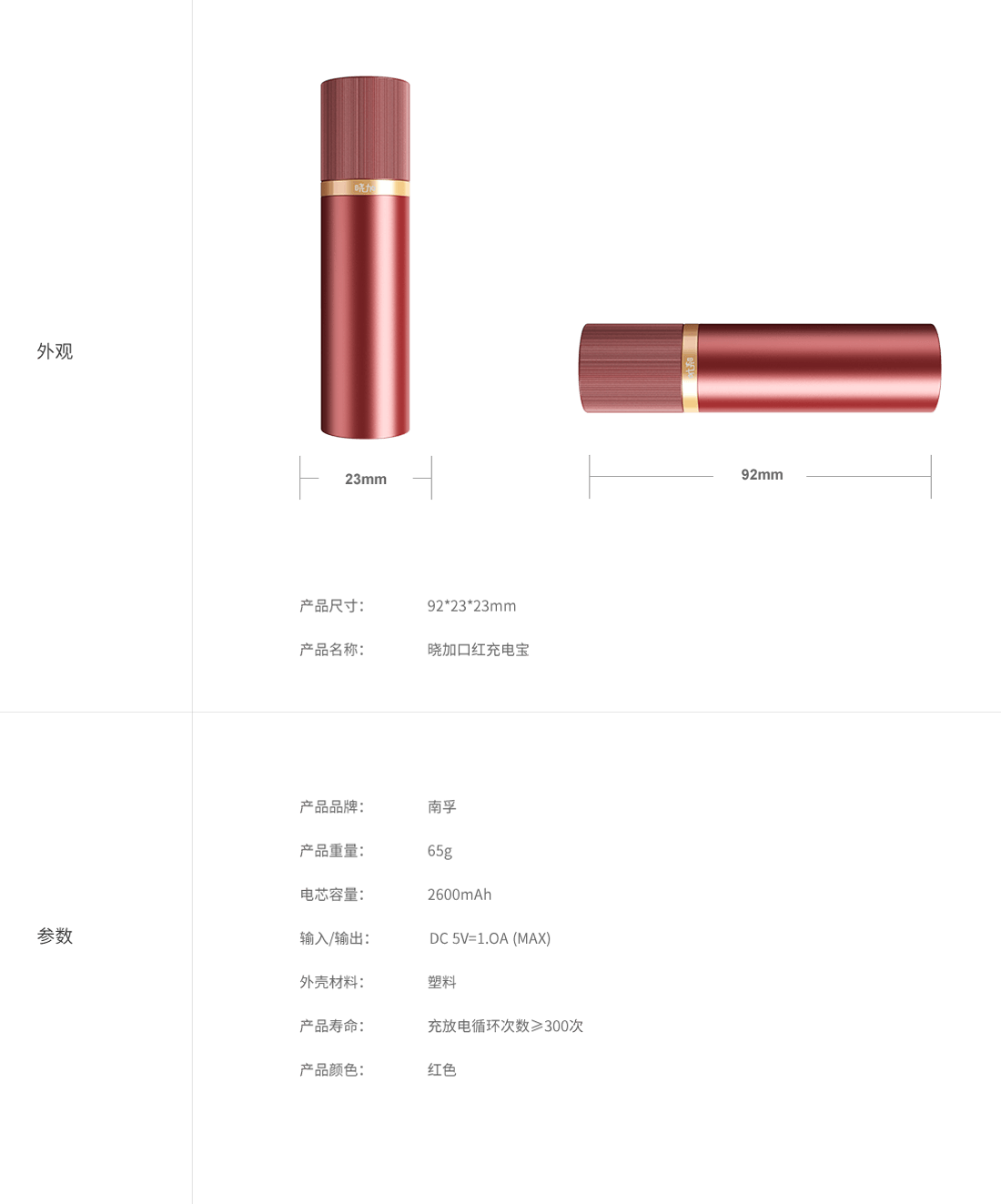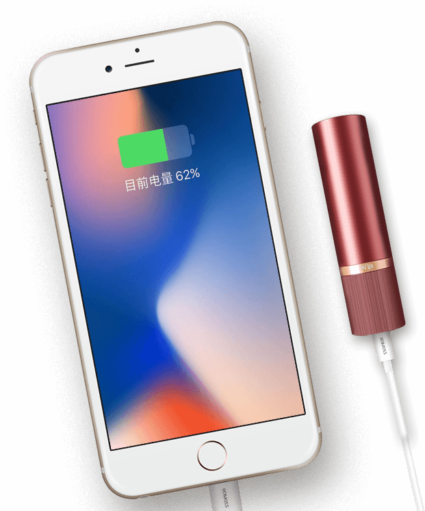 晓加口红充电宝如口红般大小,小巧玲珑;随手放进包里